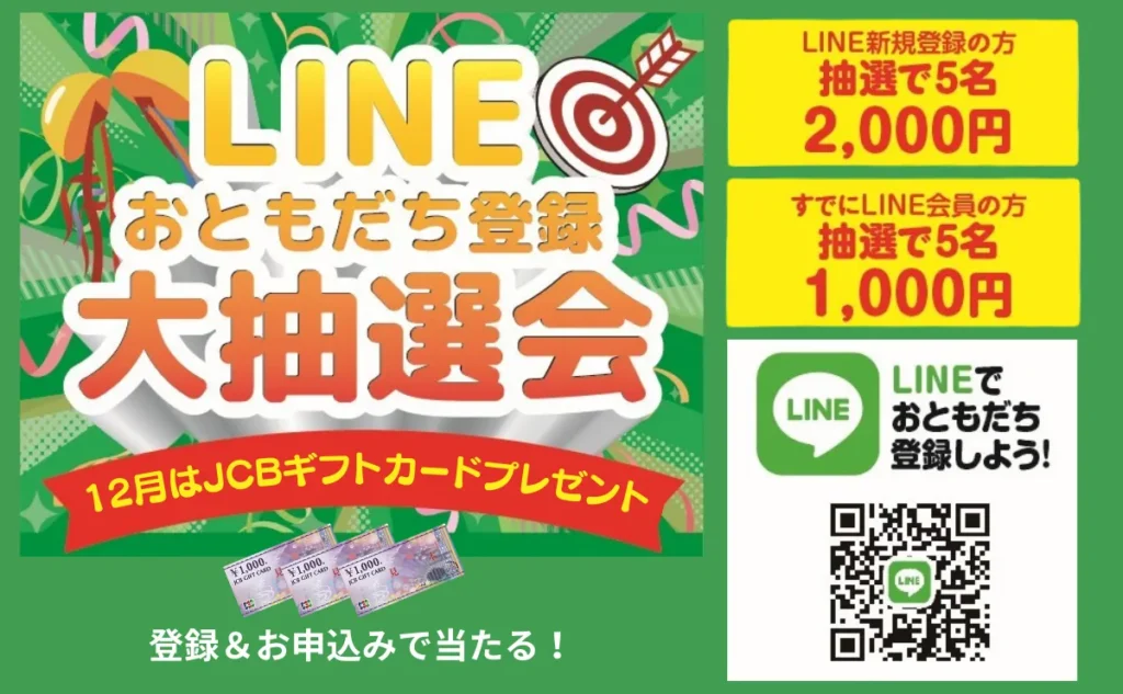 合計10名様に当たる!JCBギフト券プレゼントキャンペーン🎁LINEおともだち登録大抽選会!【12月】