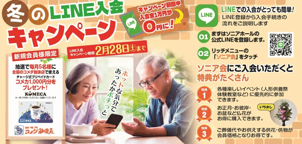 今、ソニアホール公式LINEから「ソニア会」にご入会いただくと、通常10,000円の**入会金がなんと「0円」**になります!