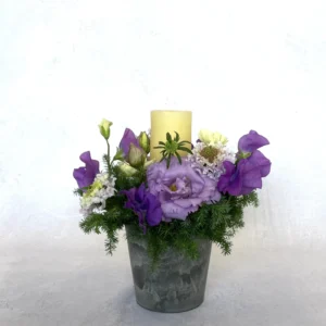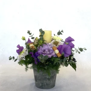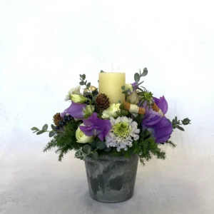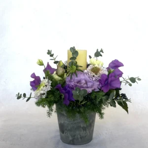 ❺スカビオサ、スイートピーを挿します。360度挿しましょう