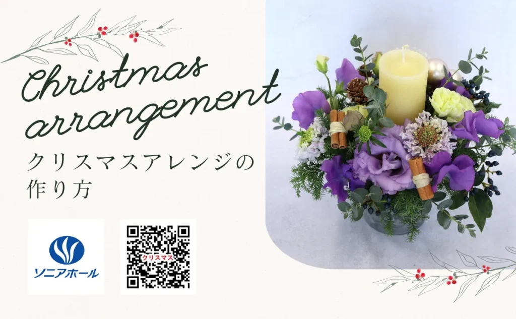 2025年11月24日 ソニアホール浅井にて行いましたフラワーアレンジメント教室『クリスマスアレンジメント』の作り方を紹介します。