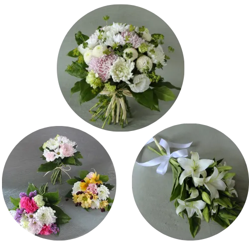 - 白木祭壇と生花: 優美な白木祭壇を使用し、生花アレンジメント(5点)に胡蝶蘭を取り入れて装飾いたします。